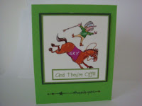 Inspiration for the layout came from Karen Watson's Knowhow on Heat Embossing in the July issue of Cardmaking & Papercraft. The papers I used came from K&Company's Citronella 12x12 paper pack which I bought yesterday when I was out at lunch with Linda aka Pinklilacs, my cardmaking buddy here in Bahrain. The image is Lily with present from the Lily set by Digistamp Boutique and coloured with Copic pens. The sentiment is a silver peel-off coloured with an orange peel-off colouring pens from Imag-e-nation. The distressing is done with an orange Whisper pen.